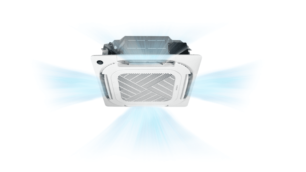 Inclui unidades interiores do tipo mural, cassete, conduta, consola e chão/teto.
