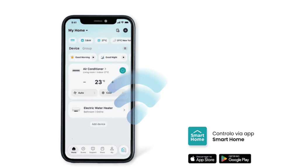 Dispõem de ligação Wi-Fi integrada, que permite o controlo remoto através de aplicação disponível para smartphone. Através da app, o utilizador pode gerir os modos de funcionamento, monitorizar consumos, identificar anomalias e otimizar a utilização do equipamento.