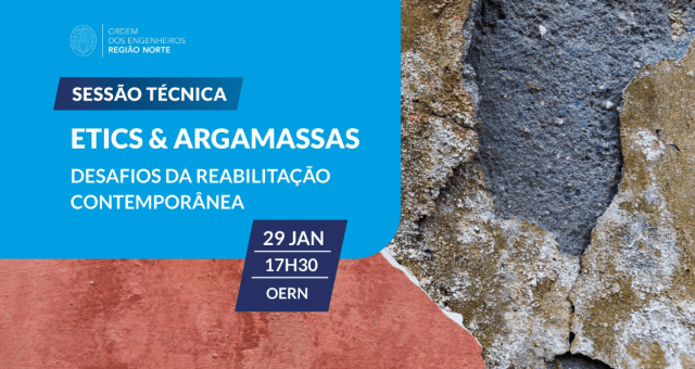 O Grupo de Trabalho de Engenharia Civil da OERN organiza no próximo dia 29 de janeiro, às 17 horas, a sessão técnica dedicada à promoção do conhecimento técnico e as valências das melhores práticas de conceção e aplicação de argamassas e sistemas ETICS, com a presença de especialistas da área e a decorrer na sede da OERN.