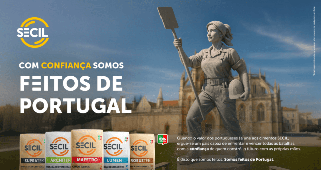 Sob o mote “Feitos de Portugal”, a SECIL celebra a qualidade, confiança e inovação enquanto enaltece o papel ativo de todos os que constroem Portugal, do passado ao futuro, criando paralelismos com os seus produtos, pensados para servir todas as exigências e contribuir para projetos sólidos e duradouros.