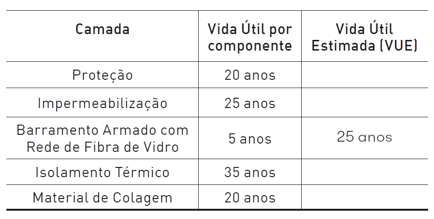 Quadro 2: Vida Útil Esperada da cobertura plana analisada (adaptado de [5]).