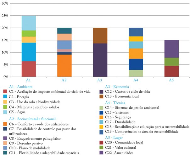 Figura 3. Pesos relativos das Áreas e Categorias do método HBSAtool-PT.