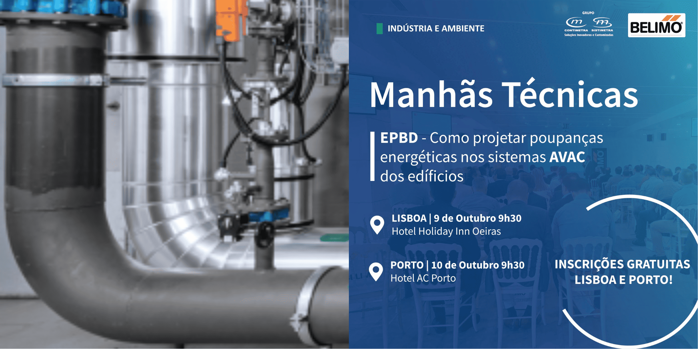 O Grupo Contimetra/Sistimetra, em parceria com a Belimo, irá realizar uma sessão técnica exclusiva em Lisboa e Porto, nos próximos dias 9 e 10 de Outubro sobre “Como projetar poupanças energéticas nos sistemas AVAC dos edifícios de acordo com a norma EPBD”. …